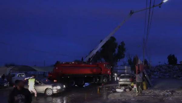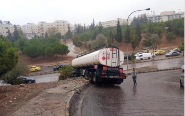 انزلاق صهريج بترول وخروجه عن مساره على شارع الأردن (صور)