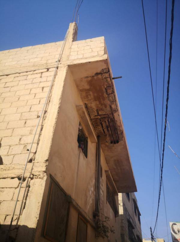 شرفة منزل قرب روضة اطفال آيلة للسقوط في الرصيفة .. والبلدية تتحرك