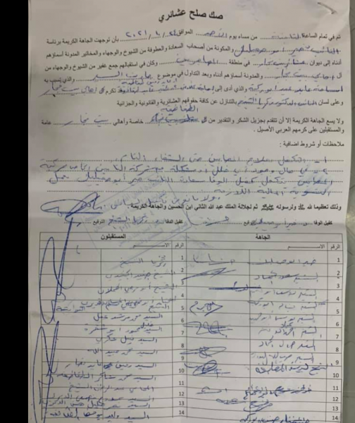 صلح عشائري بين عشائر بيت فجار وعشيرة الجراوين/ بئر السبع