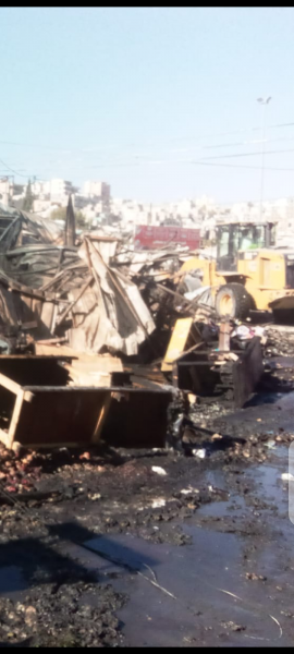 كوادر ألامانة تعمل على إزالة أثار حريق رغدان
