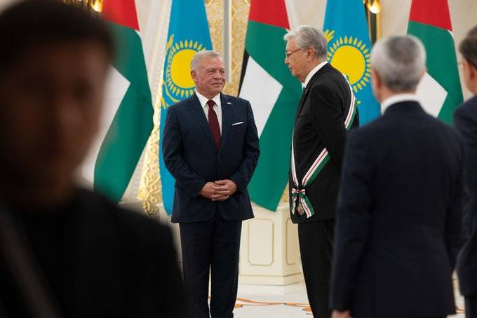 جلالة الملك يمنح رئيس جمهورية كازاخستان وسام النهضة المرصع
