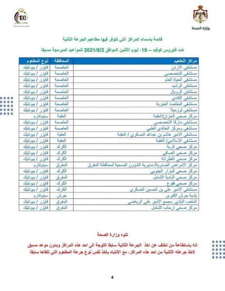 قائمة باسماء المراكز التي تتوفر فيها مطاعيم الجرعة الثانية ضد فايروس #كوفيد19