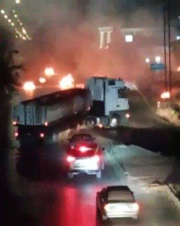 الأمن يتعامل مع أشخاص أغلقوا الشارع الرئيسي بالقرب من جسر منطقة ام القطين