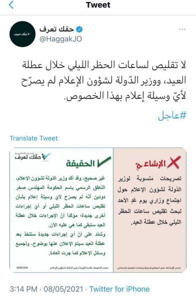 الحكومة : لا تقليص لساعات الحظر الليلي خلال عطلة العيد