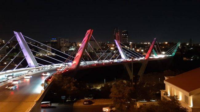 شاهد بالصور .. إضاءة جسر عبدون وشارع الوكالات بالعلم الاردني