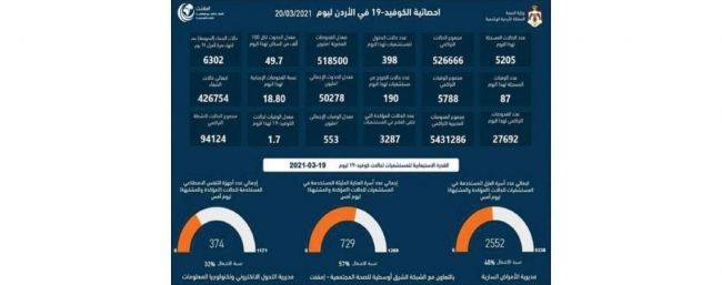 عاجل : الأردن : تسجيل 88 وفاة و 8789 بفيروس كورونا في الاردن