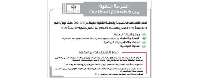 إعادة فتح مراكز اللياقة البدنية والمسابح اليوم