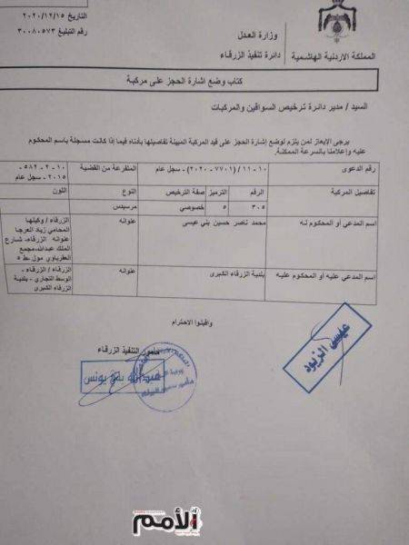 الحجز على اموال بلدية الزرقاء ومركبة الرئيس