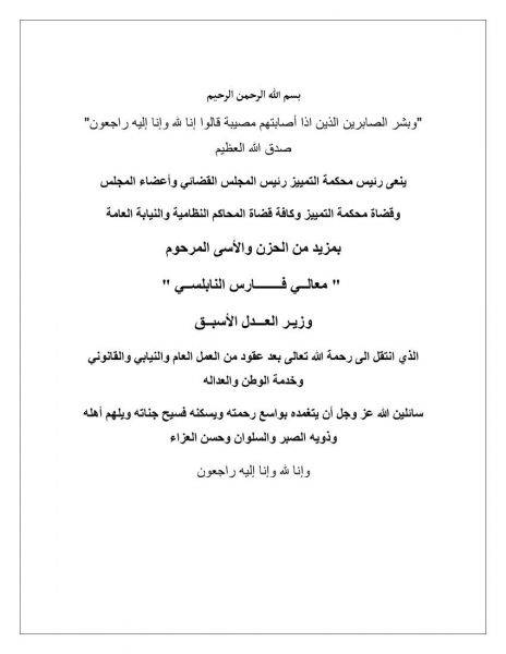 المجلس القضائي ينعى الوزير الأسبق فارس النابلسي