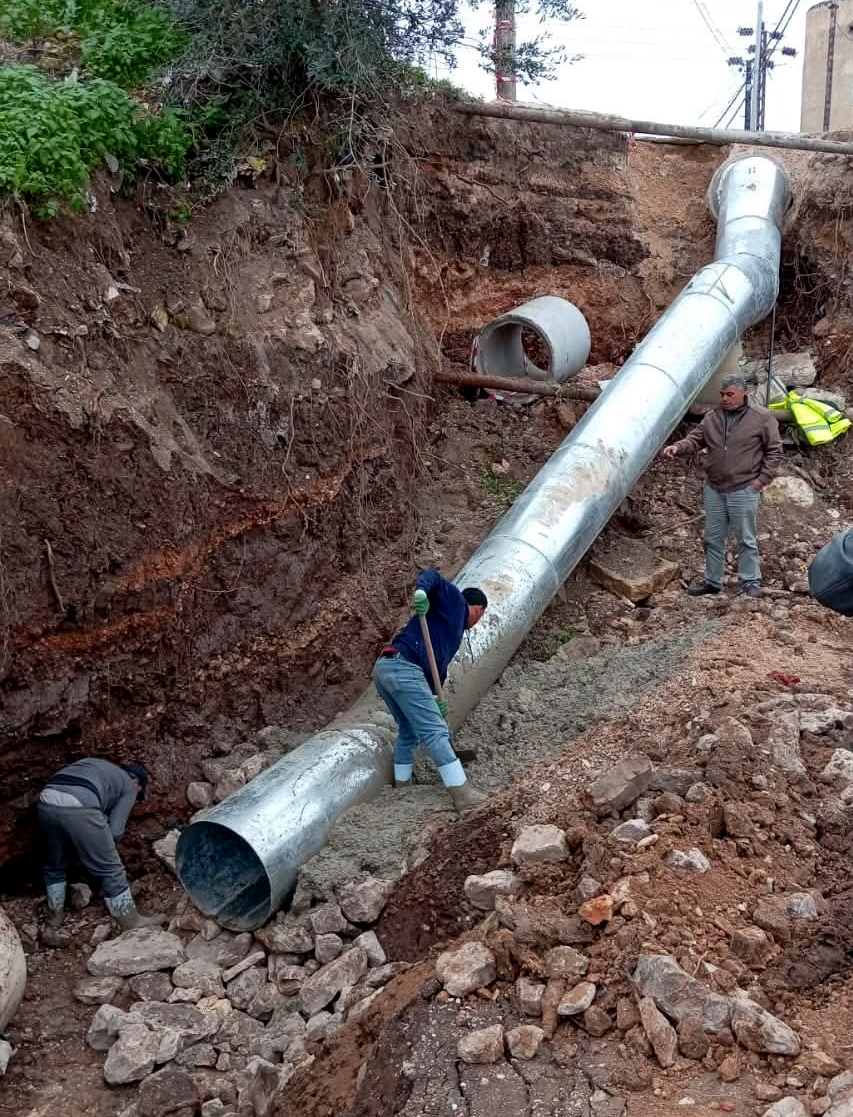 بلدية الطيبة تعالج انهيار أتربة في الوسط التجاري