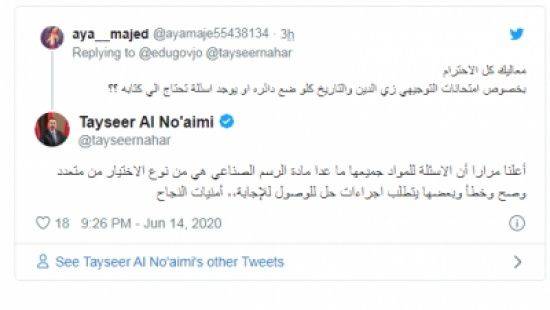 النعيمي يكشف عن مادة في امتحانات التوجيهي لن تكون اختيار من متعدد