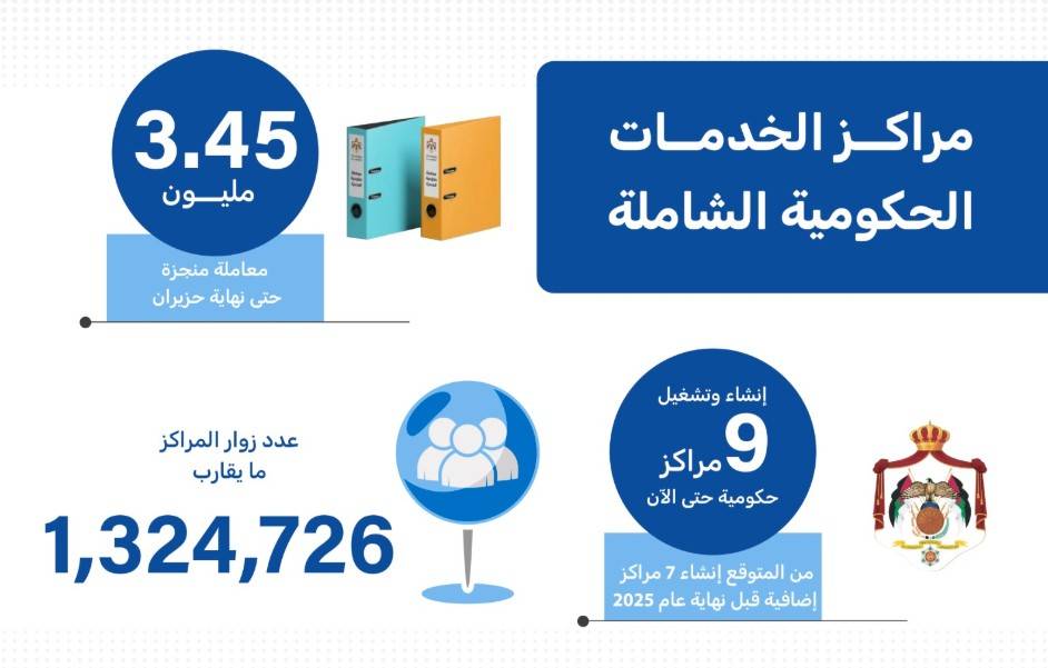 إنجاز 3.45 مليون معاملة في مراكز الخدمات حتى نهاية حزيران