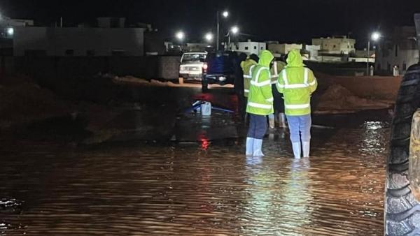 بلدية شيحان تعالج تجمعات مياه أمطار على طريق الربة -القصر