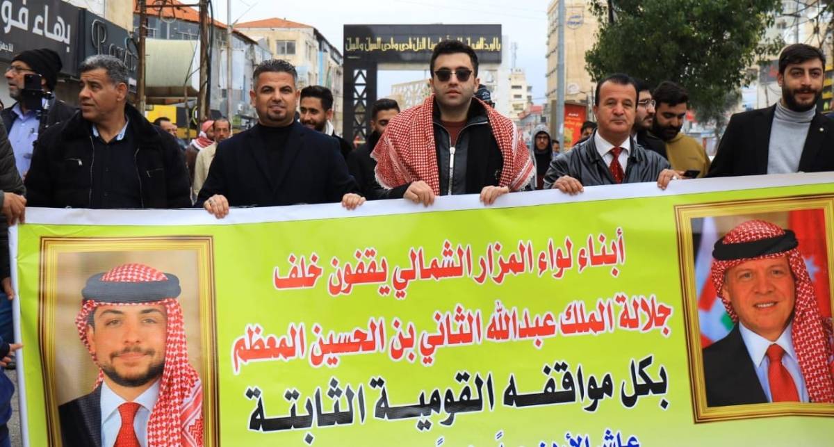 الآلاف يحتشدون في إربد دعما لمواقف جلالة الملك.