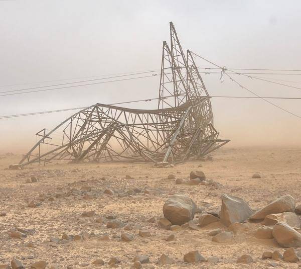سقوط أبراج كهرباء ضغط عال في حسينية معان جراء الرياح الشديدة