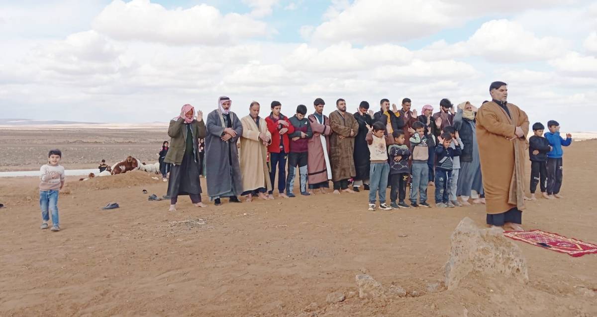 تضرعًا لله و طلباً للغيث.... أهالي قرية ديرالقن في البادية الشمالية الشرقية يؤدون صلاة الاستسقاء