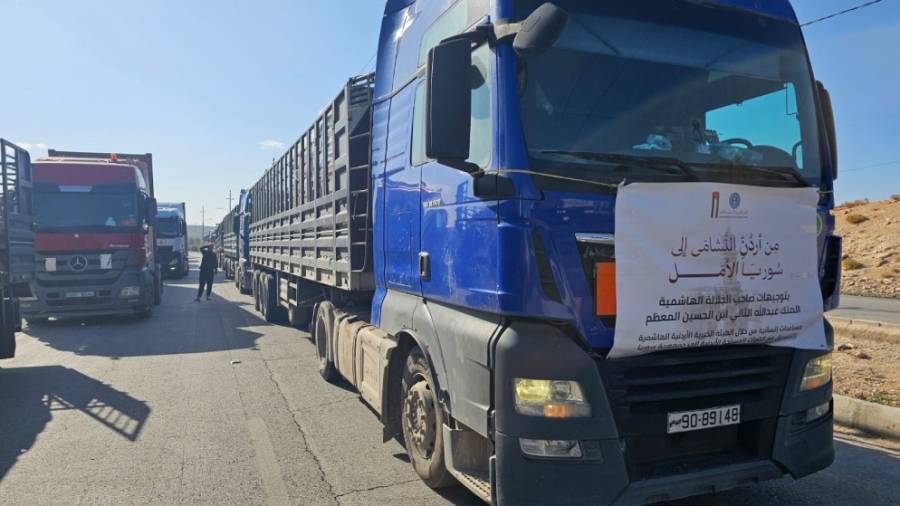 قافلة مساعدات إنسانية أردنية جديدة تدخل إلى سوريا الاثنين
