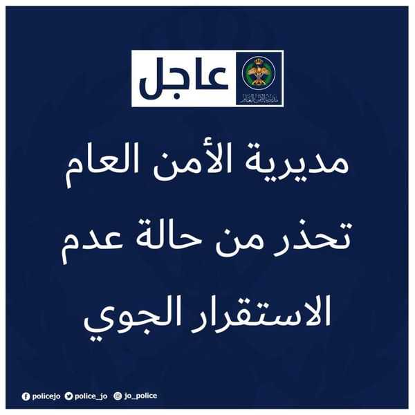 مديرية الأمن العام تحذر من حالة عدم الاستقرار الجوي