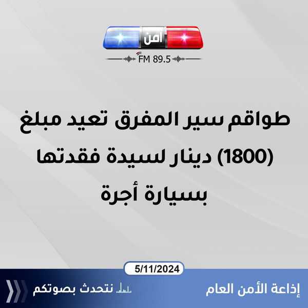 طواقم سير المفرق تعيد مبلغ (1800) دينار لسيدة فقدتها بسيارة أجرة
