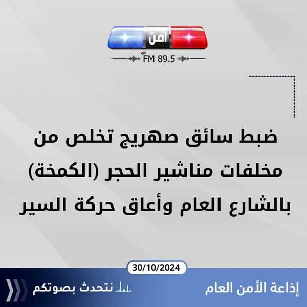 ضبط سائق صهريج تخلص من مخلفات مناشير الحجر (الكمخة) بالشارع العام وأعاق حركة السير