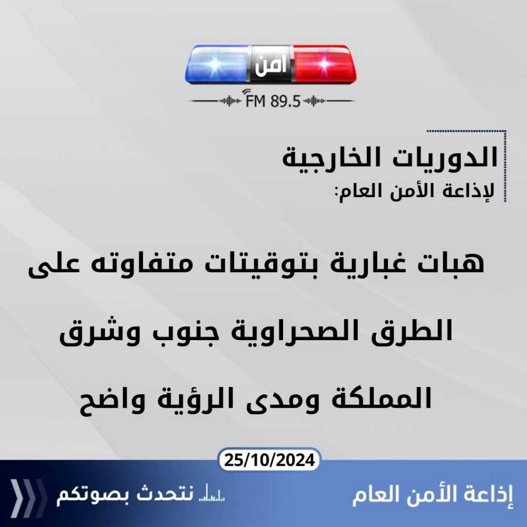 هبات غبارية على الطرق الصحراوية الجنوبية والشرقية