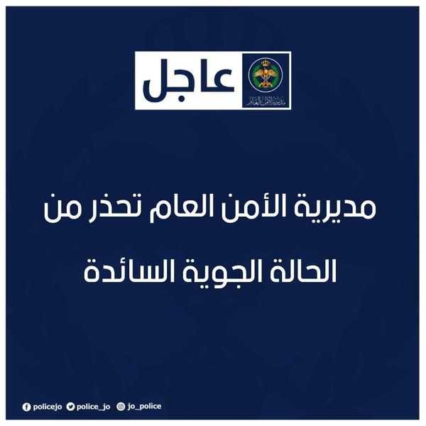 مديرية الأمن العام تحذر من الحالة الجوية السائدة