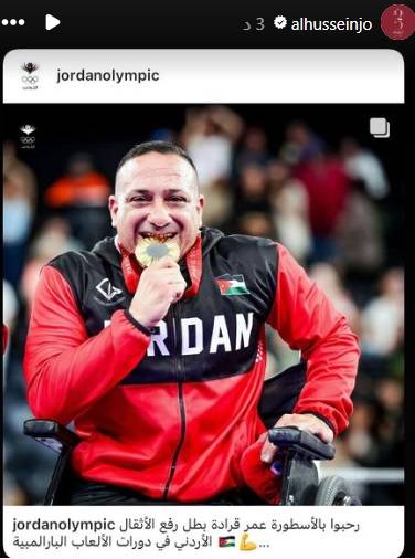 ولي العهد يهنئ البطل عمر قرادة المتوج بأول ميدالية ذهبية أردنية في دورة الألعاب البارالمبية