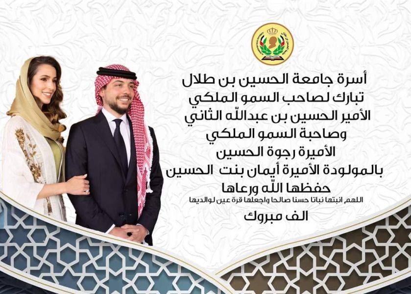 شركة الأسواق الحره الاردنيه تهنئ بقدوم الأميرة إيمان بنت الحسين