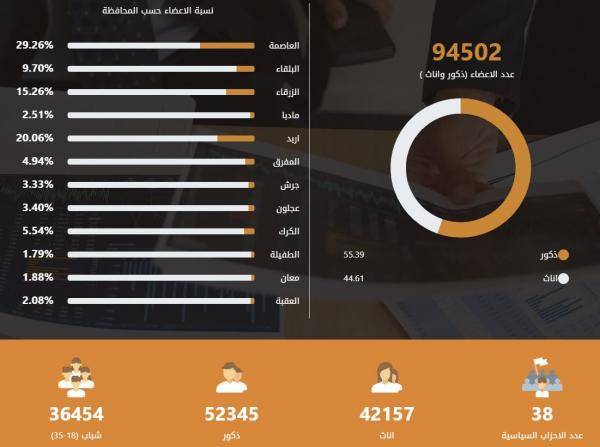 94 ألفا و502 منتسبا للأحزاب في الأردن