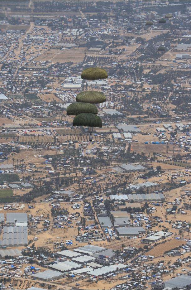 الجيش الاردني ومساعدات غزة : ارتفاع عدد الانزالات الجويه الاردنيه الى 96 انزالا والمشتركة الى 248 ى جنوب غزة بمشاركة دولية
