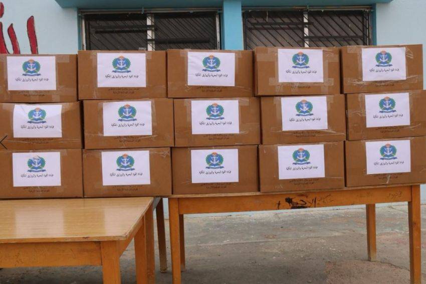 القوة البحرية والزوارق الملكية توزع طرود خير