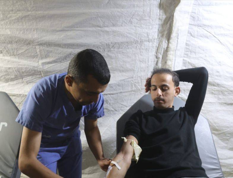 طواقم المستشفى الميداني الأردني جنوب غزة/٢ تتبرع بالدم للمرضى والجرحى والمصابين