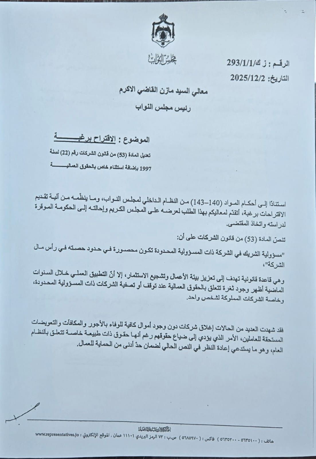 النائب زهير الخشمان يحرّك المياه الراكدة: اقتراح بتعديل قانون الشركات لإنصاف العمال بعد ضياع حقوقهم لسنوات