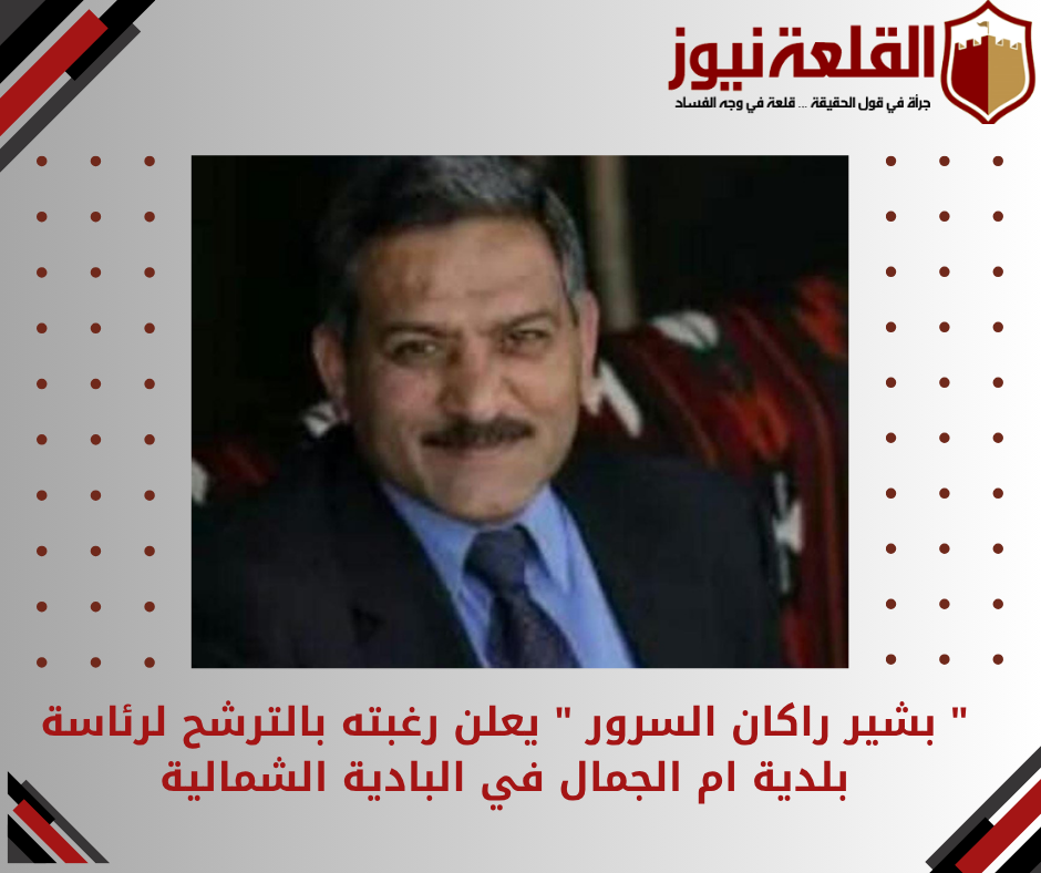 " بشير راكان السرور " يعلن رغبته بالترشح لرئاسة بلدية ام الجمال في البادية الشمالية