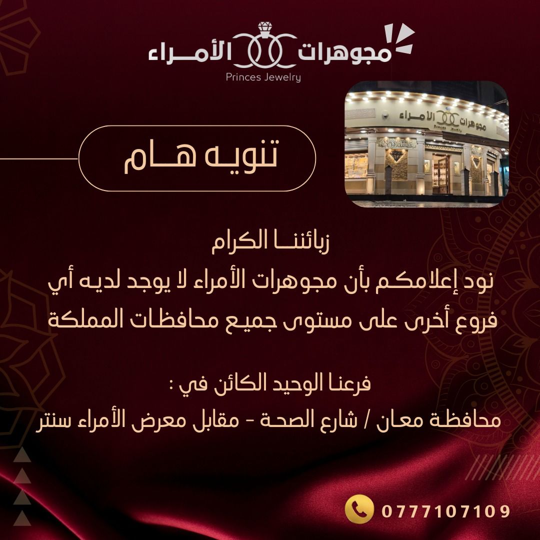 تنويه هام من مجوهرات الأمراء في محافظة معان
