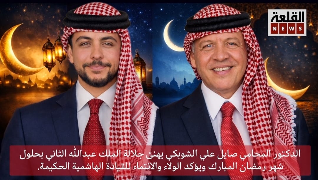 الدكتور المحامي صايل علي الشوبكي يهنئ جلالة الملك عبدالله الثاني وولي عهده الأمين بحلول شهر رمضان المبارك ويؤكد الولاء والانتماء للقيادة الهاشمية الحكيمة.