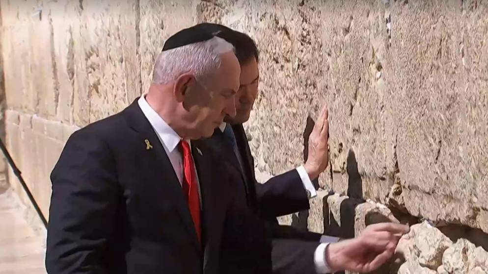 نتنياهو ووزير الخارجية الأميركي يزوران حائط البراق في القدس المحتلة