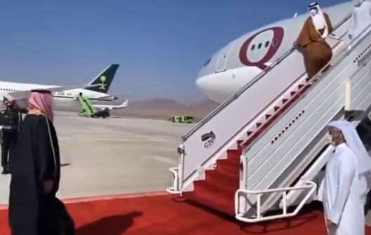 عاجل :شاهد بالفيديو .. "الله حيه .. نورت المملكة" .. أول عبارة سمعها أمير قطر من ولي العهد السعودي