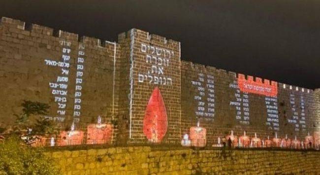 اسرائيل تعرض اسماء جنودها القتلى مضاءة مضاءة على سور البلده القديمه من القدس