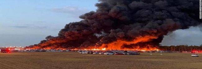 عاجل: شاهد بالفيديو.. حريق ضخم قرب مطار فلوريدا يدمر أكثر من 3500 سيارة...