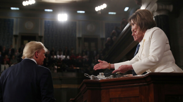ترامب يستعرض إنجازاته.. وبيلوسي تمزق نسخة من خطابه
