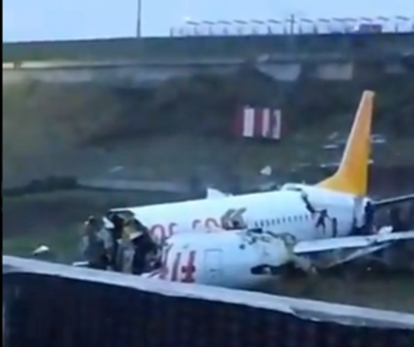 تحطم طائرة في اسطنبول خرجت عن مسارها وانشطرت لنصفين