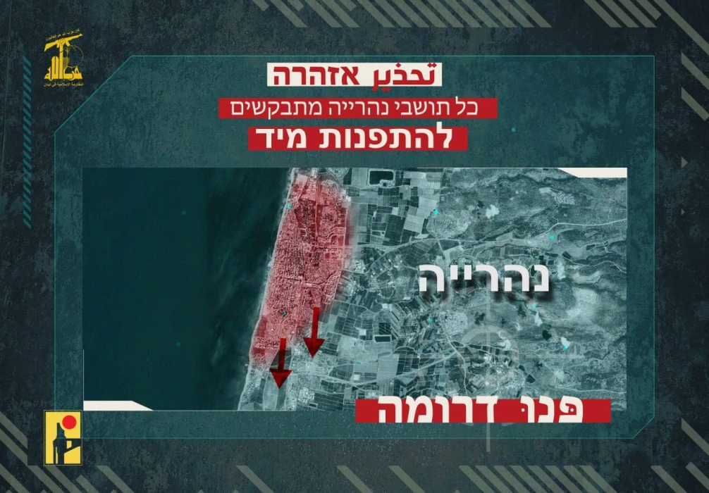 المقاومة اللبنانية تصدر أوامر إخلاء وتنذر سكان مغتصبات نهاريا وكريات شمونة بضرورة الإخلاء #عاجل