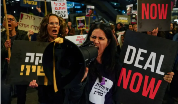 عائلات الأسرى الإسرائيليين تعتصم أمام منزل نتنياهو