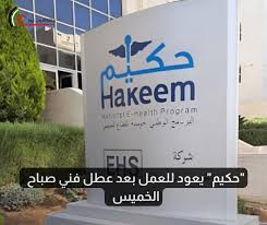 عودة نظام "حكيم" للعمل بعد عطل فني في عدد من منشآت وزارة الصحة