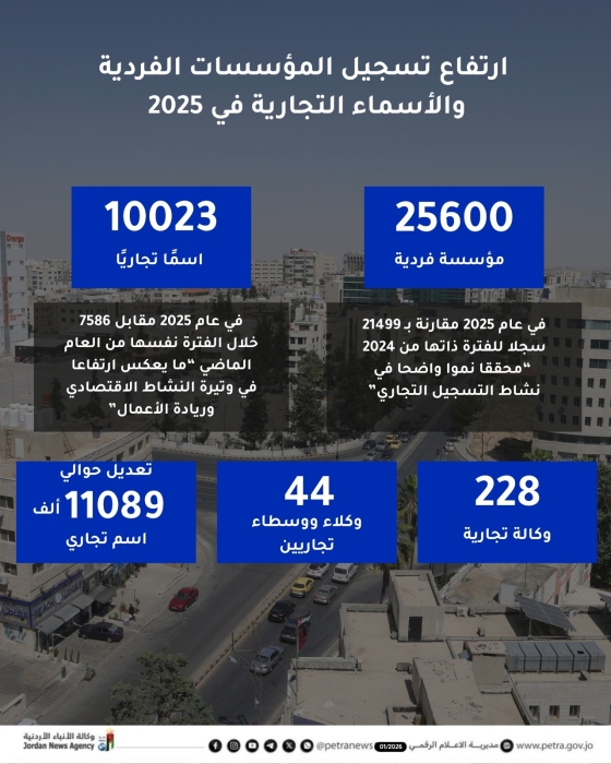 الصناعة والتجارة: ارتفاع تسجيل المؤسسات الفردية والأسماء التجارية في 2025