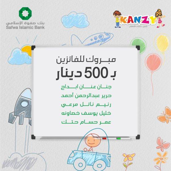 بنك صفوة الإسلامي يعلن الفائزين بجوائز حساب توفير الأطفال "كنزي" لشهر نيسان 2023