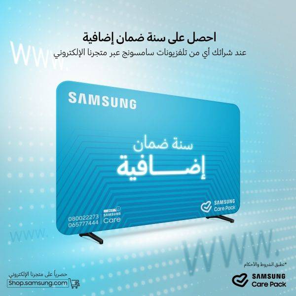 سنة كفالة إضافية على أجهز التلفاز من متجر سامسونج الإلكتروني
