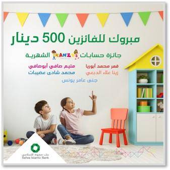 بنك صفوة الإسلامي يعلن الفائزين بجوائز حساب توفير الأطفال "كنزي" لشهر شباط 2022