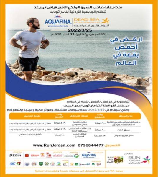 الجمعية الأردنية للماراثونات تعلن عن إطلاق فعاليات أكوافينا ألترا ماراثون البحر الميت في نسخته السادسة والعشرون في اّذار المقبل